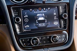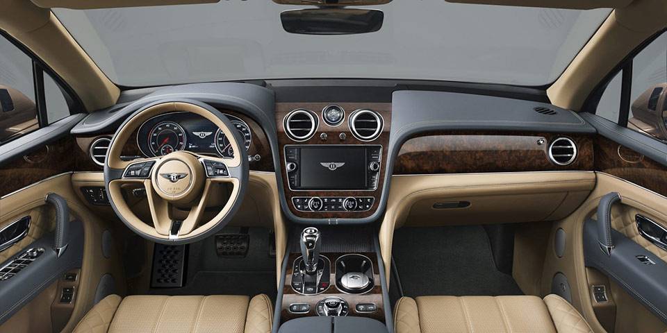 کابین بنتیگا تنها در ظاهر لوکس به نظر نمیرسد بلکه میتوان از گوشه و کنار آن عطر و بوی تجلل را هم استشمام کرد. سرنشینان این خودرو با انبوهی از پوششهای چوبی، فلزی و پوستی باکیفیت احاطه شدهاند و صندلیهای چرمی آن از راحتی بینظیر برخوردارند. در وسط سرعتسنج و دورسنج عقربهای این مدل که بخش زیادی از صفحه کیلومتر را به خود اختصاص دادند، یک نمایشگر دیجیتالی چند منظوره قرار گرفته اما مسئولیت اصلی در این بخش روی دوش نمایشگر لمسی هشت اینچی وسط داشبورد افتاده که یکی از بهترین سیستمهای سرگرمی این کمپانی را در خود جای داده است.