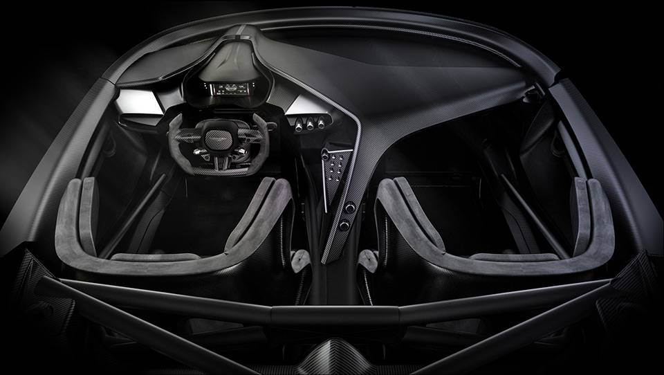 محفظهی کابین ولکان به صورت استاندارد با یک رولکیج (roll cage) کامل احاطه شده است. تم مشکی و تیرهای که به سبب استفادهی فراوان از فیبر کربن، در کابین این مدل حاکم است، تنها با نوارهای نارنجی و دکمههای قرمز روی کنسول وسط، به هم خورده و اندکی متنوعتر شده است. صفحهکیلومتر بزرگ ولکان تمامی اطلاعات حیاتی موردنیاز شما در طول رانندگی از جمله سرعت، لپ تایم (lap time)، فشار تایرها و میزان مصرف سوخت را در اختیارتان قرار میدهد.