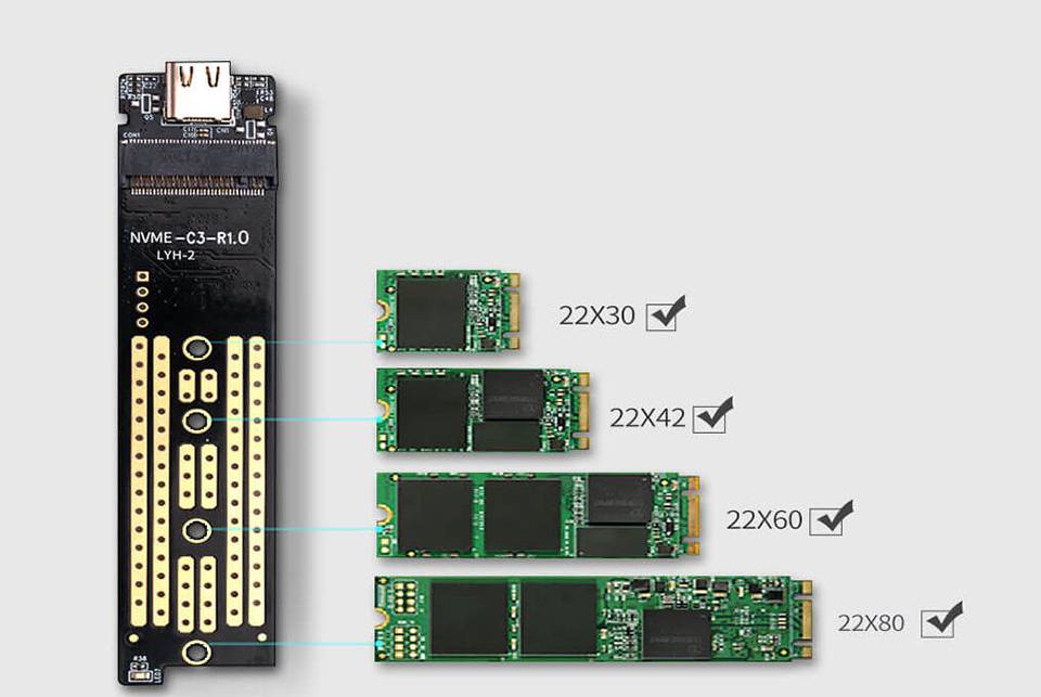 پیش از هر چیز بهتر است بدانید که این قاب از تمامی سایزهای ۲ پورت M-Key و B&M-Key پشتیبانی میکند و در واقع با خرید یک قاب میتوانید از کارایی دوگانهی آن بهرهمند شوید. حداقل سرعت انتقال این محصول ۱۰۰۰ مگابایت در ثانیه است که در آزمایشگاه اوریکو مورد آزمایش قرار گرفته و این میزان سرعت عملکرد و بهبود کارایی زیادی را برای باکس به ارمغان آورده است. عملکرد این محصول توسط چیپست کنترلی ASM2364 که هوشمند عمل میکند.