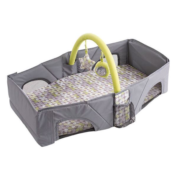 تخت مسافرتی نوزاد سامر – Summer وسیله ای کاربردی برای خواباندن نوزاد و یا تعویض پوشک است. این محصول براحتی باز شده و به صورت تخت نوزاد در میاید لبه های تخت بلند است و مانع از غلتیدن کودک میگردد. یک دسته با ۲ آویز برای بازی کردن کودک تعبیه شده تا حین تعویض پوشک سرگرم شده و بهانه گیری نکند. این دسته قابل جدا شدن است. همچنین پنل جلویی تخت هنگام تعویض پوشک کاملا جدا شده و فضای بازتری ایجاد می شود. پنل چپ و راست تخت، محفظه های توری دارد که باعث افزایش جریان هوا و تنفس راحت تر نوزاد خواهد شد. این تخت مسافرتی بچه گانه عملکرد دیگری نیز دارد زیرا قابل تبدیل به کیف دوشی است. این تخت مناسب نوزادانی با نهایت قد ۷۳.۶۶ سانتیمتر میباشد.