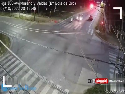 یک زن موتورسوار توقف کرده پشت چراغ قرمز یک تقاطع به محض سبز شدن چراغ به آرامی شروع به حرکت کرد، اما موتورسواری دیگر بدون توجه به چراغ قرمز به سرعت از راه رسید و به شدت به این زن برخورد کرد. دوربین راهنمایی و رانندگی در چهارراه لحظه وقوع این حادثه را ضبط کرده است.