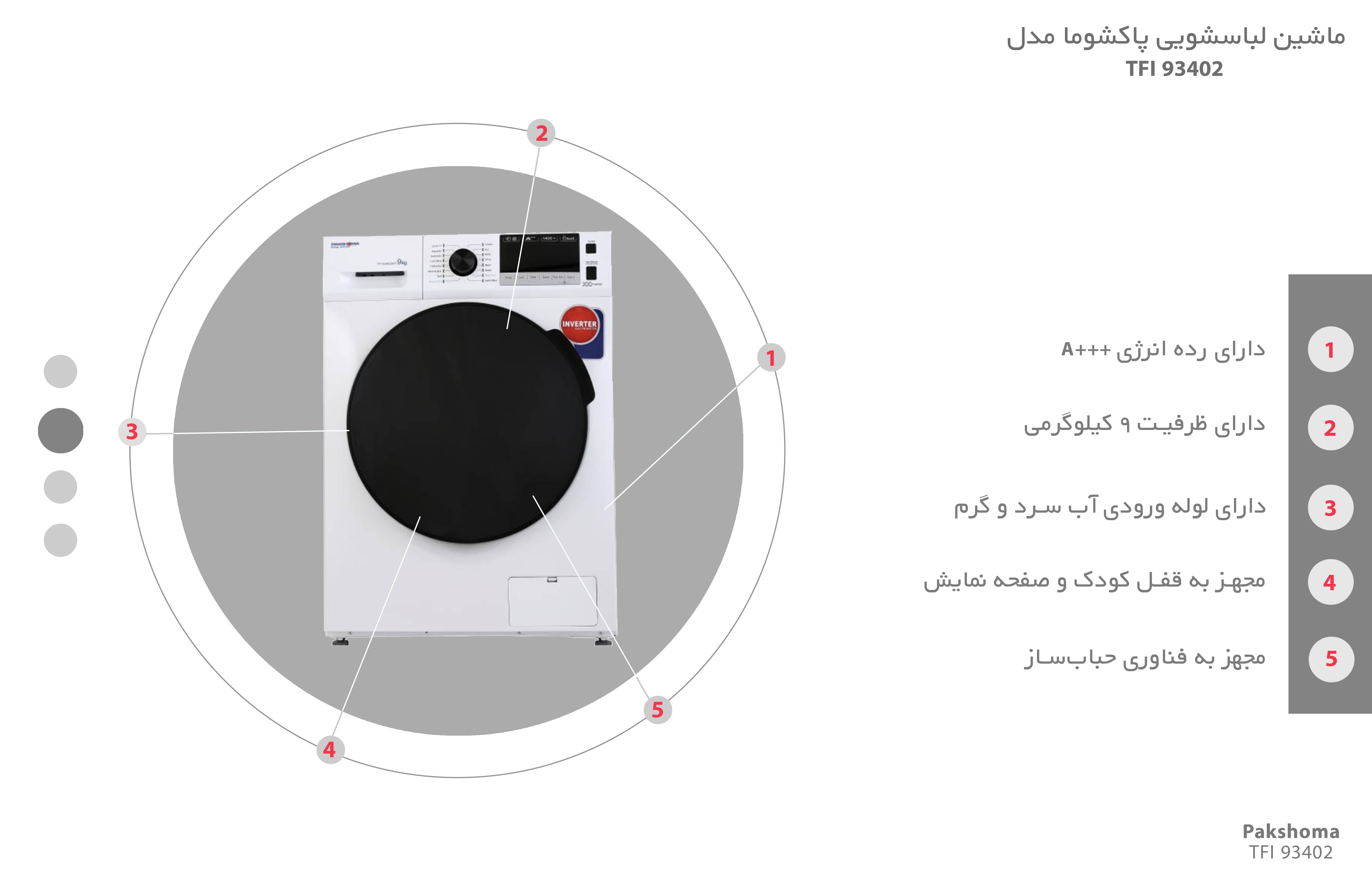 برای تهیه ماشین لباسشویی باید به امکانات، قدرت و مصرف انرژی ماشین توجه کنیم. یکی از محصولاتی که در این ۳ زمینه ویژگیهای مطلوبی دارد، ماشین لباسشویی پاکشوما مدل TFI 93402 ظرفیت ۹ کیلوگرم است. در ادامه بیشتر با این مدل آشنا میشویم.