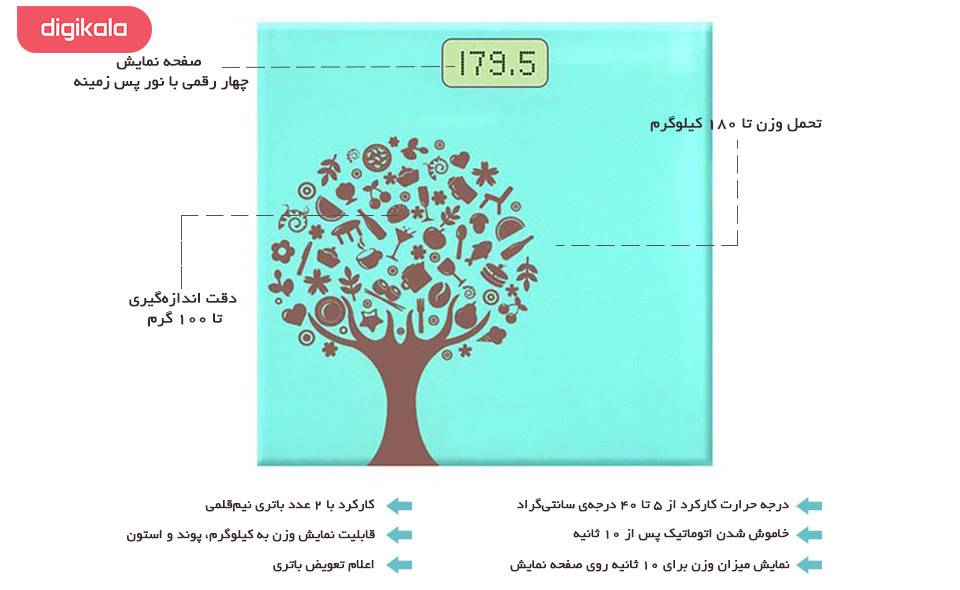 – کمترین میزان اندازهگیری: ۲.۵ کیلوگرم