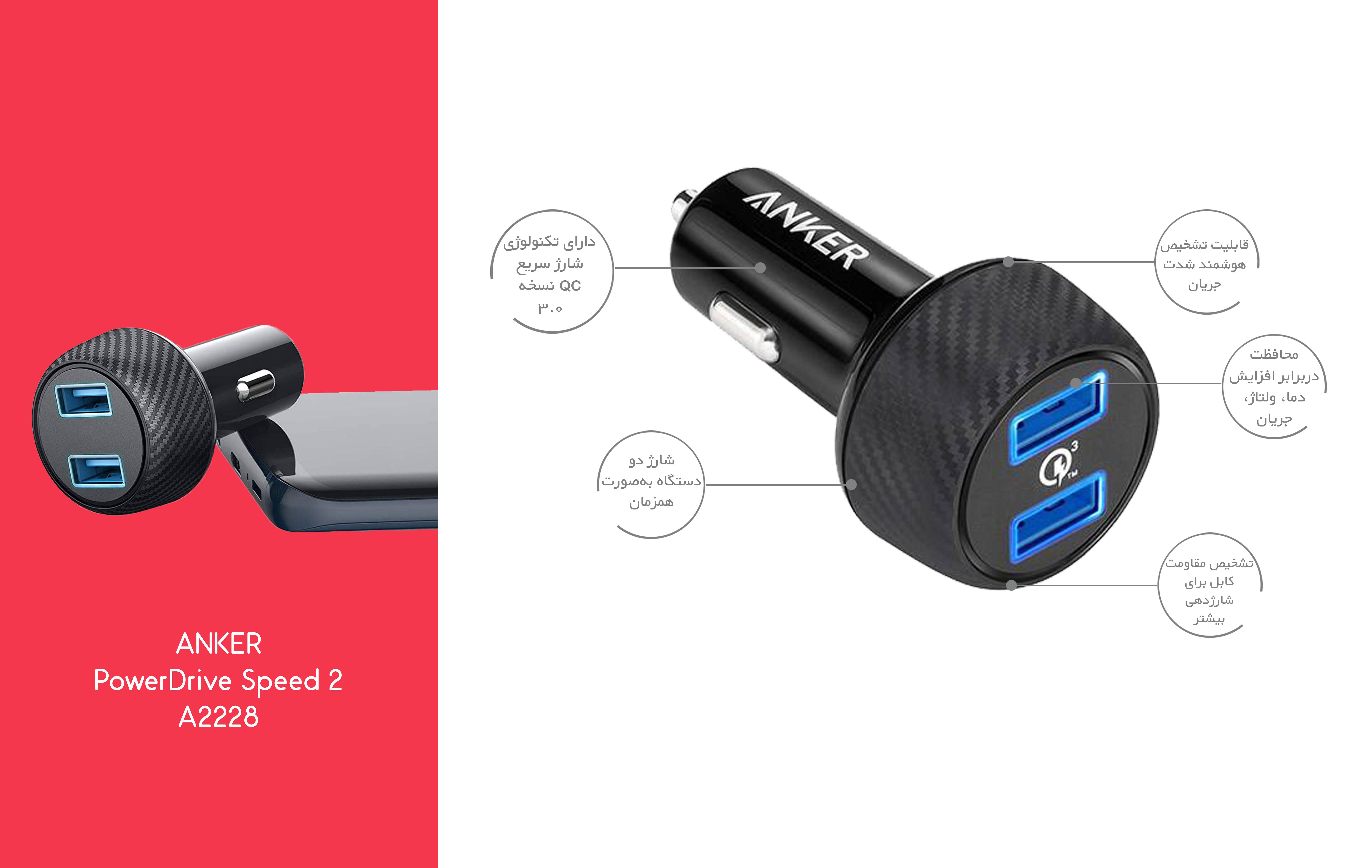شارژر فندکی انکر مدل PowerDrive Speed 2