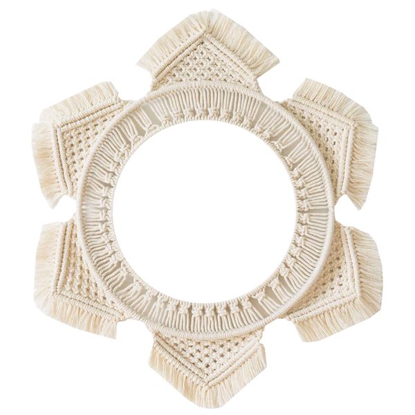 قاب آیینه بوهو ماه مدل sun-001 بافته شده از نخ پنبه روی دو عدد حلقه استیل است . مناسب برای آینه با قطر ۲۰ سانتمیتر میباشد . برای نصب در اتاق خواب ، پذیرایی و سایر فضاها به عنوان عنصر دکوراتیو بسیار مناسب است .مکرومه در سبک های دکوراسیون مانند بومهین، ساحلی و در ترندهای پاییزی و زمستانی نقش پر رنگ ایفا می کند و از نظر بصری به دلیل افزودن بافت و هنر به دکوراسیون زیبایی و جذابیت را سبب می شود.