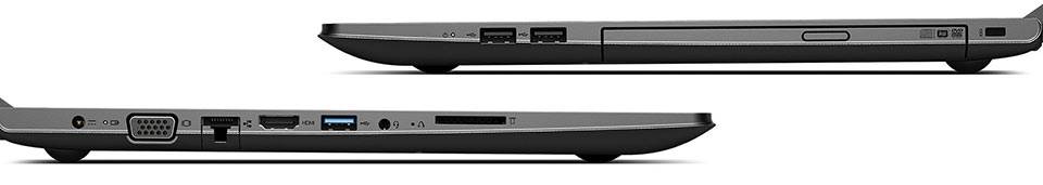 در سمت چپ لپتاپ، یک پورت VGA و یک پورت HDMI برای انتقال تصویر وجود دارد که با استفاده از این دو پورت میتوانید تصویر را به انواع نمایشگرهای بزرگتر و ویدئو پروژکتورها انتقال دهید. یک عدد پورت LAN برای اتصال به شبکهی کابلی هم در این قسمت وجود دارد که با یک درپوش فنری در حالت عادی، نیمی از آن پوشانده میشود تا تنها در هنگام استفاده به صورت کامل باز باشد. یک پورت USB 3.0 و یک کارتخوان حافظهی SD هم در این قسمت داریم و در نهایت به میکروفون و جک ۳.۵ میلیمتری هدفون میرسیم. در سمت راست، تنها دو پورت USB 2.0 را شاهد هستیم که با یک درایو نوری DVD تکمیل شدهاند. تمام پورتهای به کار رفته در این لپتاپ، کاملا مطابق انتظار هستند و هیچ ویژگی جذاب و هیجانانگیزی در مورد آنها وجود ندارد. یک کارت شبکه با پشتیبانی از استاندارد ۸۰۲.11ac در اختیار لپتاپ است تا بتواند با بالاترین سرعت ممکن به شبکههای خانگی و اداری وصلتان کند. این نوع استاندارد، حداقل سه برابر سریعتر از استانداردهای قدیمیتر b/g/n است و میتواند لذت استریمکردن ویدئو و دانلود را برایتان به ارمغان بیاورد.