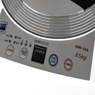 مینیواش «فریدولین» (Feridolin) مدل «SWF35A» وسیلهای بسیار کاربردی، نسبتا سبک و کوچک است که میتواند برای شستوشوی لباسها در حجم کم یا برای شستوشوی الیاف حساس استفاده شود. این دستگاه یک مینیواش تمام اتوماتیک در از بالا است که از ظرفیت داخلی ۳.۵ کیلوگرم بهره میبرد. برای شروع بهکار دستگاه کافی است لباسها را از دریچه بالایی به داخل مخزن ریخته و دکمه روشن و خاموش دستگاه را بفشارید. در قسمت بالایی بدنه دستگاه پنل تنظیمات آن واقع شده است. از طریق این پنل امکان تعیین نوع عملکرد دستگاه وجود دارد. همچنین یک صفحهنمایش دیجیتالی زمان باقیمانده تا پایان عملیات شستوشو را به کاربر نمایش میدهد. از دیگر خصوصیات کاربردی این مدل، قابلیت تعیین سطح آب است که در سه حالت مختلف قابل تنظیم است. علاوهبراین، مینیواش SWF35A دارای پمپ تخلیه، فیلتر پرزگیر و شیر برقی است. در نظر داشته باشید که فریدولین، یک شرکت تولیدی صنعتی ایرانی است که پیش از ۳۵ سال سابقه دارد. فعالیت اصلی فریدولین، در زمینهی تولید مینیواش و ماشینهای لباسشویی نیمهخودکار و خودکار در طراحها و مدلهای متنوع است. از ویژگیهای محصولات این شرکت میتوان به استفاده از فناوری روز در تولیدات، صرفهجویی در مصرف آب و مواد شوینده و کاهش زمان شستشوی لباسها اشاره کرد.
