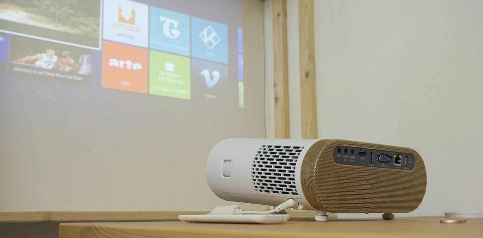 درون این بدنه لنز DLP با وضوح ۸۰۰ × ۱۲۰۰ پیکسل جا خوش کرده است که نسبت تصویری برابر با ۱۶:۱۰ دارد. تصاویری با نسبت تصویر ۱۶:۹ با دو قسمت اضافه در بالا و پایین تصویر نمایش داده میشوند. لنز برد-کوتاه در این مدل بدین معناست که میتوانید از فاصلهای ۱ متری تصویری در حدود ۹۲ اینچ بر روی پردهی نمایش خلق کنید. درنتیجه میتوانید دستگاه را بهسادگی بر روی میزی قرار داده و استفاده کنید. در این محصول قابلیت زوم وجود ندارد اما میتوانید از قابلیت تصحیح زاویهی تصویر Keystone Correction استفاده کنید تا اختلاف زاویهی بین دستگاه و پردهی نمایش را حذف کنید. البته در نظر داشته باشید که این قابلیت کمی از وضوح تصویر میکاهد. ویژگی جالب دیگر در این محصول کاور لنز است که خاصیتی آهنربایی داشته و در هنگام استفاده از دستگاه میتوانید آن را جدا کرده و در قسمت سمت چپ لنز وصل کنید. این دستگاه میتواند تصویری با وضوح 720p درشدت روشنایی ۵۰۰ لومن و کنتراست ۱۰۰.۰۰۰ تولید کند.