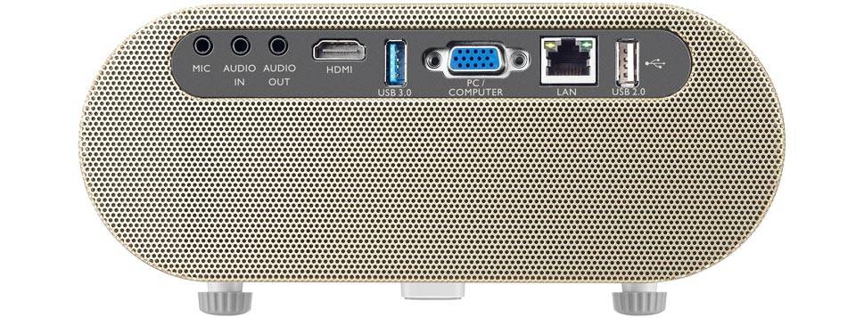 برای دسترسی به منابع تصویری i500 دارای ورودیهای HDMI و ورودی VGA است. همچنین این دستگاه دارای ۲ پورت USB است که میتواند برای پخش ویدیو و دیگر اسناد از طریق فلش مموری مورداستفاده قرار گیرد. همچنین میتوانید کیبوردی با اتصال USB به i500 متصل کنید تا فرآیند وارد کردن پسورد و کنترل منوها تسهیل شود. برای صدا نیز اتصالاتی در این مدل در نظر گرفته شده است. این پروژکتور به سیستم صوتی استریو با ۲ اسپیکر ۵ واتی مجهز شده است که همراه با ورودی جک ۳.۵ میلیمتر صدا استفاده میشود. همچنین در صورت تمایل خروجی صدا بهمنظور استفاده از اسپیکر خارجی تعبیه شده است.