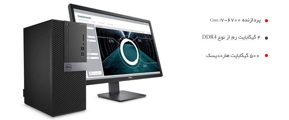 شرکت دل کیس اسمبل شده OptiPlex را به قطعاتی حرفهای تجهیز کرده است که در صورت تهیهی جداگانه این قطعات هزینهی تمام شده برای کاربر تقریبا برابر با هزینهی تهیهی این کیس خواهد بود. کیس OptiPlex دارای CPU اینتل Core i7-6700 است که پردازندهای قدرتمند برای کارهای حرفهای است. همچنین پردازندهی گرافیکی ارائه شده برای این محصول HD Graphics 530 بوده که درواقع کارت گرافیک آنبرد است. شرکت دل برای ذخیرهسازی اطلاعات در این کیس اسمبل شده ۵۰۰ گیگابایت هارددیسک با سرعت ۷۲۰۰ دور بر دقیقه در نظر گرفته است. میزان حافظهی رم ارائه شده در این محصول برابر با ۴ گیگابایت از نوع DDR4 است که میتواند مقدار بسیار مناسبی برای کاربران حرفهای باشد. درگاههای ارتباطی در کیس OptiPlex شرکت دل برابر با ۶ پورت USB3.0 و چهار پورت USB2.0 است. برای اتصال مانیتور به این کیس میتوان از درگاه HDMI و DisplayPort ارائه شده در قسمت پشتی کیس بهره برد. همچنین مهندسان شرکت دل برای این محصول یک کارتخوان حافظه در نظر گرفتهاند. در کنار درگاههای این محصول یک درگاه LAN از نوع ۱۰/۱۰۰/۱۰۰۰ مگابیتی به چشم میخورد.