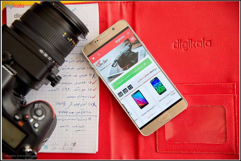 مجموعهی دوربینهای استفادهشده در نوت ۵، بدون هیچ تغییر، همانهایی هستند که در سری گلکسی S6 به کار رفته بودند. دوربین اصلی نوت ۵ به لنز IMX240 سونی، از نوع CMOS با دریچهی دیافراگم f/1.9 مجهز شده است. سایز این سنسور ۰.۲۷ اینچ، طول فوکوسش ۴.۳۵ میلیمتر و ISO آن بین ۵۰ تا ۳۲۰۰ تغییرپذیر است. این دوربین تصاویری را با رزولوشن ۵۳۱۲ در ۲۹۸۸ پیکسل ثبت میکند که هر پیکسل از این تصاویر ۱.۱۲ میکرومتر اندازه دارند. سامسونگ در کنار این دوربین، فلشی از نوع LED استفاده کرده که میتواند نور لازم را برای محیطهای کمنور تامین کند. اگر در لحظه به ثبت تصویر نیاز دارید؛ در هر شرایط و موقعیتی با دو بار فشردن کلید خانه، میتوانید به دوربین دسترسی داشته باشید.
